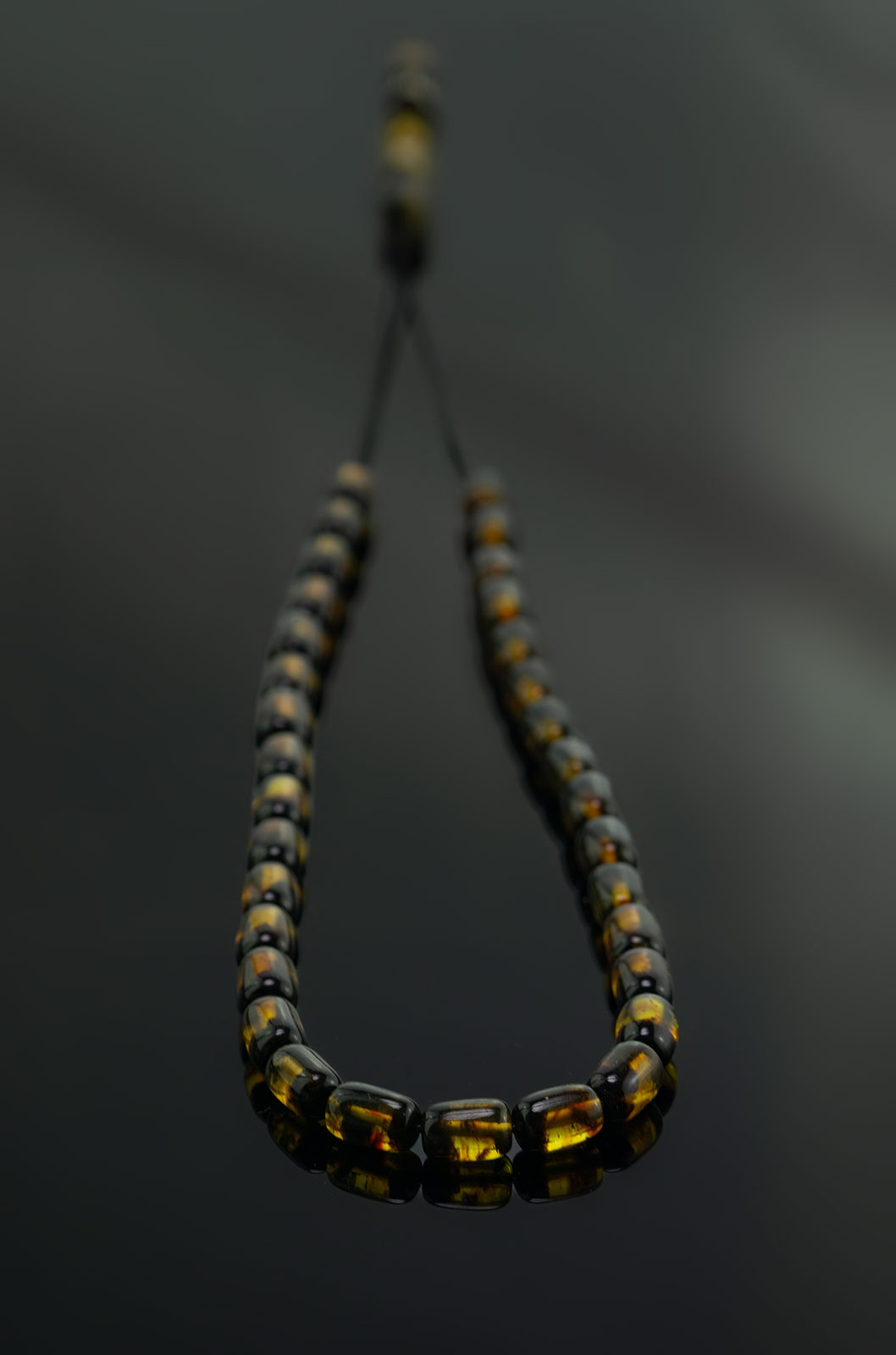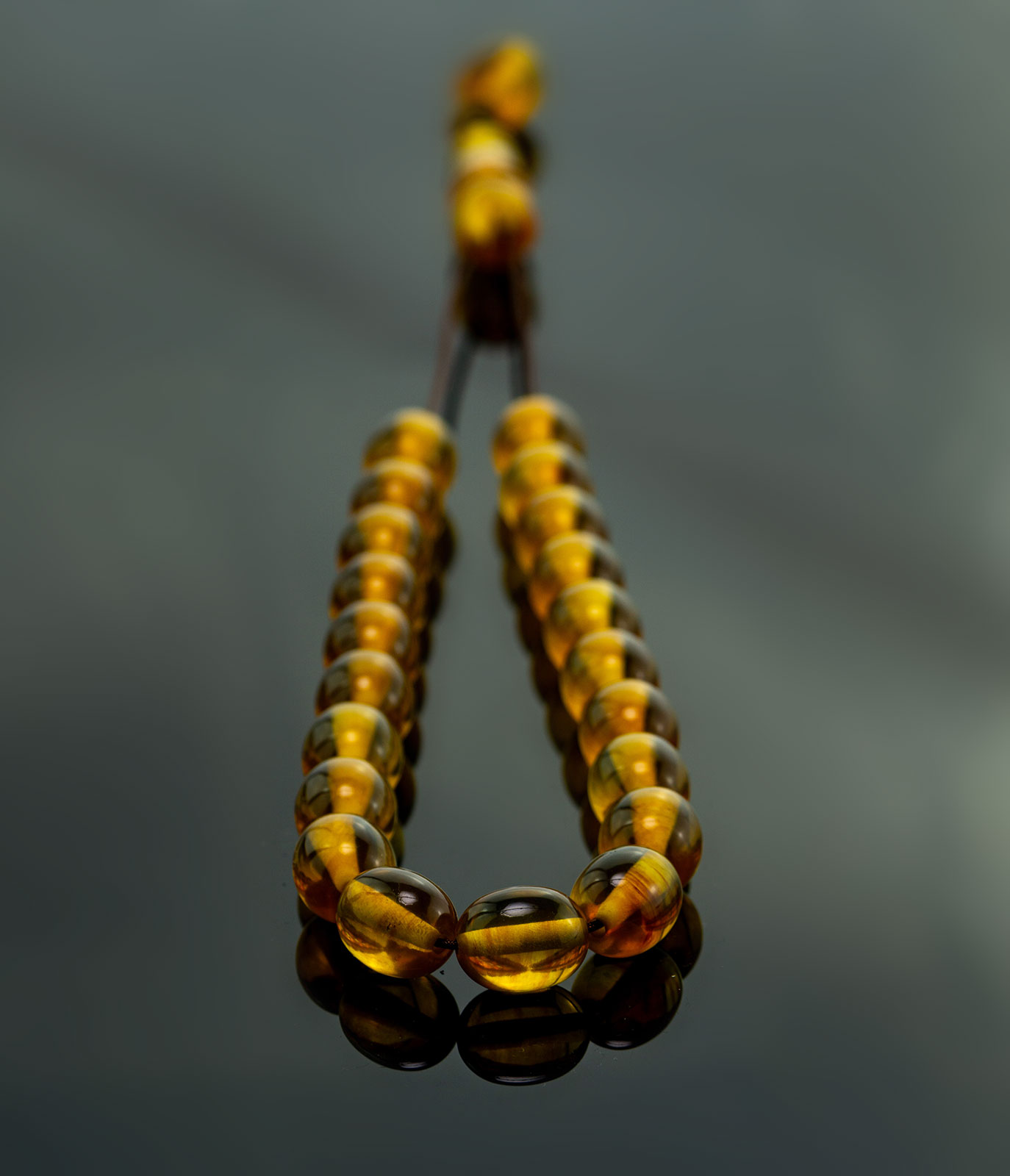The pressed amber is more durable and harder in its use and has the amber`s natural properties. It usually has a honey, light dark brown colour.