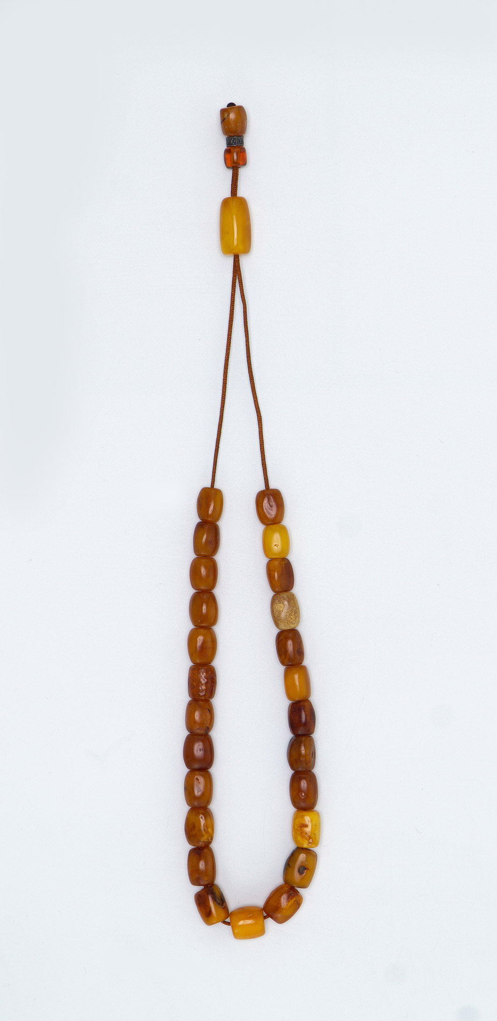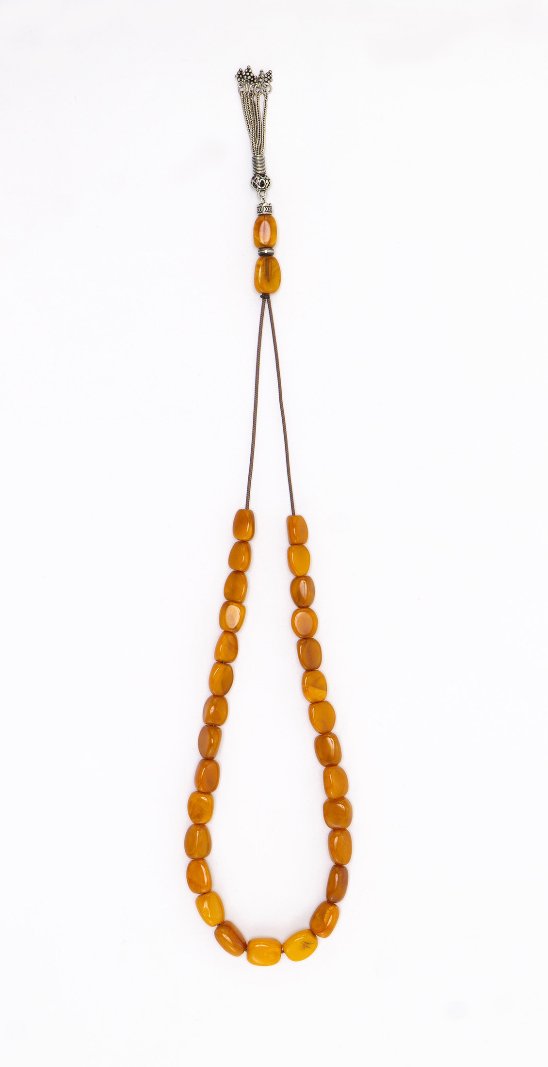 Description : Fossilised natural amber (Royal kind) with silver tassel. 21 beads.