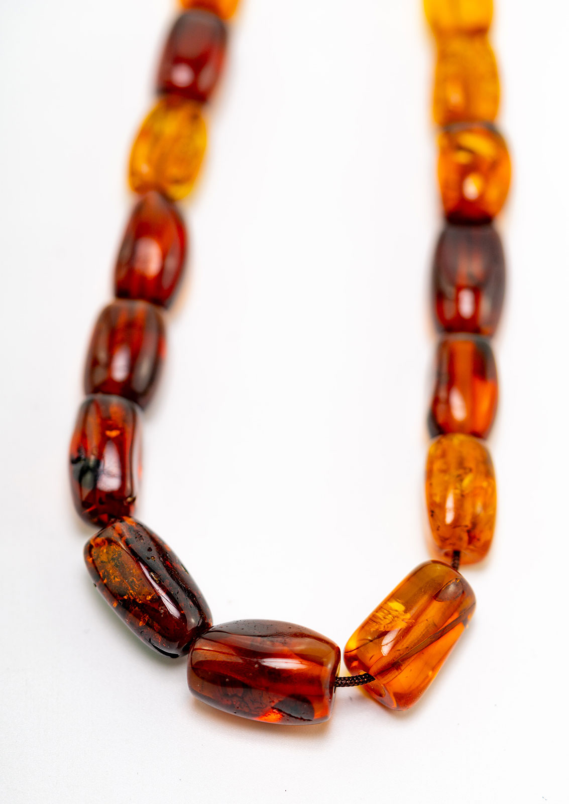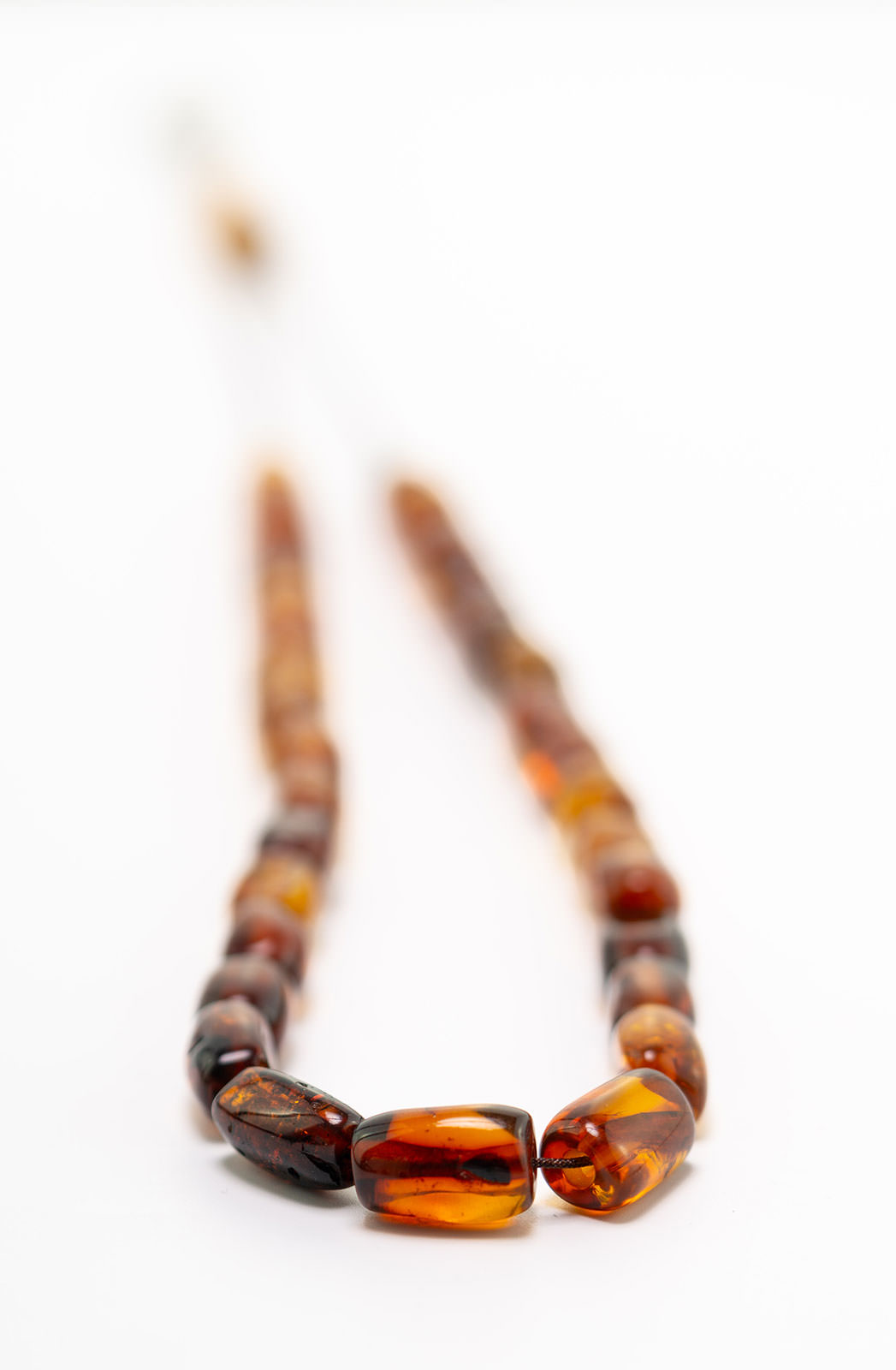 Description : Baltic sea fossilised amber (cognac). 33 beads.
