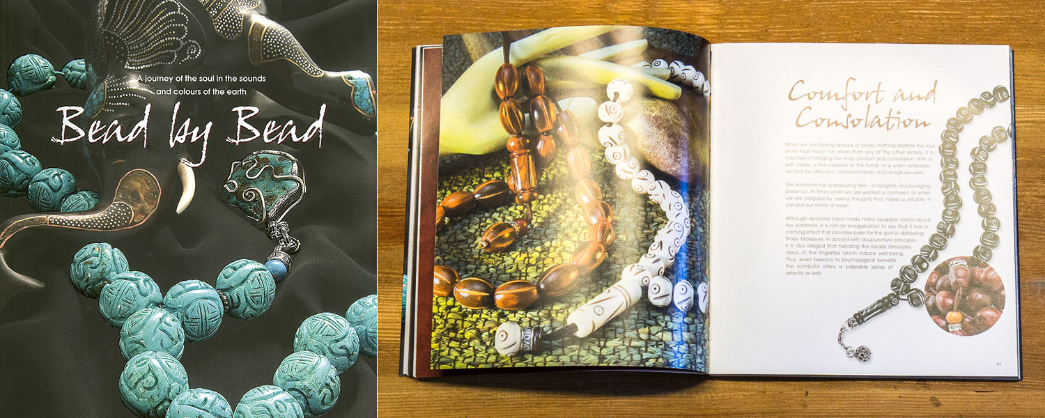 Περιγραφή : Bead by Bead. Αγγλική έκδοση. Εvα μοναδικό βιβλίο στο είδος του, στην κατηγορία των λευκωμάτων, με εμπεριστατωμένα ιστορικά στοιχεία για την διαδρομή τoυ κομπολογιου απο το 700 πΧ. Ένα ταξίδι της ψυχής στον ήχο και το χρώμα της γης. (20,5cm x 22,5cm)